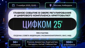 7 ноября в Москве состоится главная специализированная конференция ЦИФКОМ, объединяющая весь контур цифрового комплаенса стран Евразийской группы и СНГ. На мероприятие вас ждёт: ● 30+ спикеров: представители бизнеса, банковского сектора, криптоиндустрии, юридического сообщества и государственных структур; ● кейсы и технические аспекты цифрового комплаенса; ● обсуждение реальных инструментов снижения правовых рисков; ● нетворкинг с лидерами индустрии …